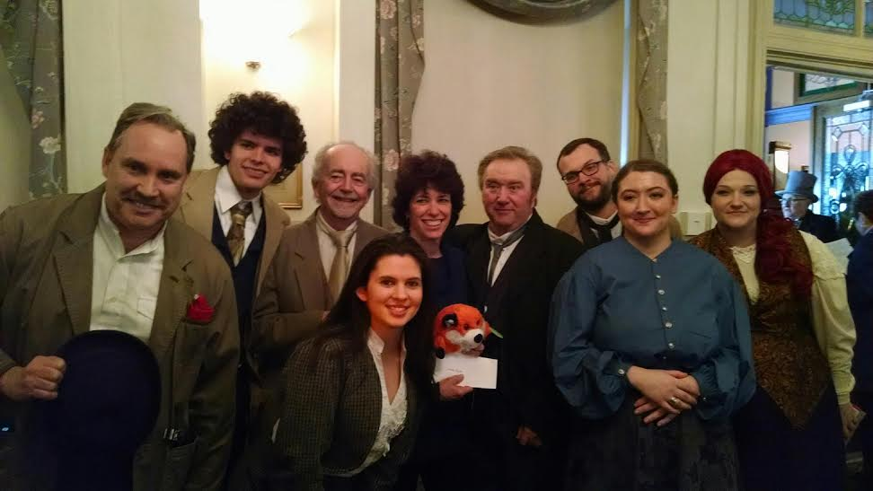 Sunday was the last day of our adventure. We completed our clue sheets in the morning, writing two different answers to cover our bases. Then we went back to the Colonial Inn, handed in our clue sheets and watched Sherlock solve the mystery over lunch in Act III. We were given a grilled chicken sandwich, with a side salad and cup of tomato soup, with chocolate mousse as a dessert. At the end, two awards were given out. One was for the Clueless Wonder, someone who tried very hard to solve the mystery, but ended up being completely wrong. The Clueless Wonder was given tickets for next year’s Sherlock Holmes weekend, so that she could try again (and hopefully improve). The other award is for the winner, who scored the highest on the clue sheets. Surprisingly, my mother won, and was presented with $200 for her efforts, and a plush fox that the actor who played Sherlock deemed necessary for winning the Case of the Silver Fox.
