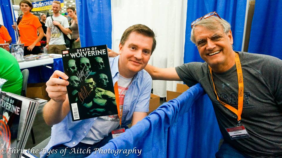 One of the funniest memories I have as well as the last time I saw Mr. Trimpe, was last September at Baltimore Comic Con. Mr. Trimpe had a table right next to Charles Soule. There was a HUGE line of people of course jockeying to get Mr. Soule’s signature on the Death of Wolverine comics that dropped and a few had sense enough to stop at Mr. Trimpe’s table. I was thinking to myself how many people passed up getting Mr. Trimpe’s signature because some were too young to remember that he was one of the creators of Wolverine and was more pressed to get Mr. Soule’s signature because it was ‘that hot book’ of the moment. I made sure that I got my comics signed by and grabbed a picture of them both: The Alpha and Omega of Wolverine.