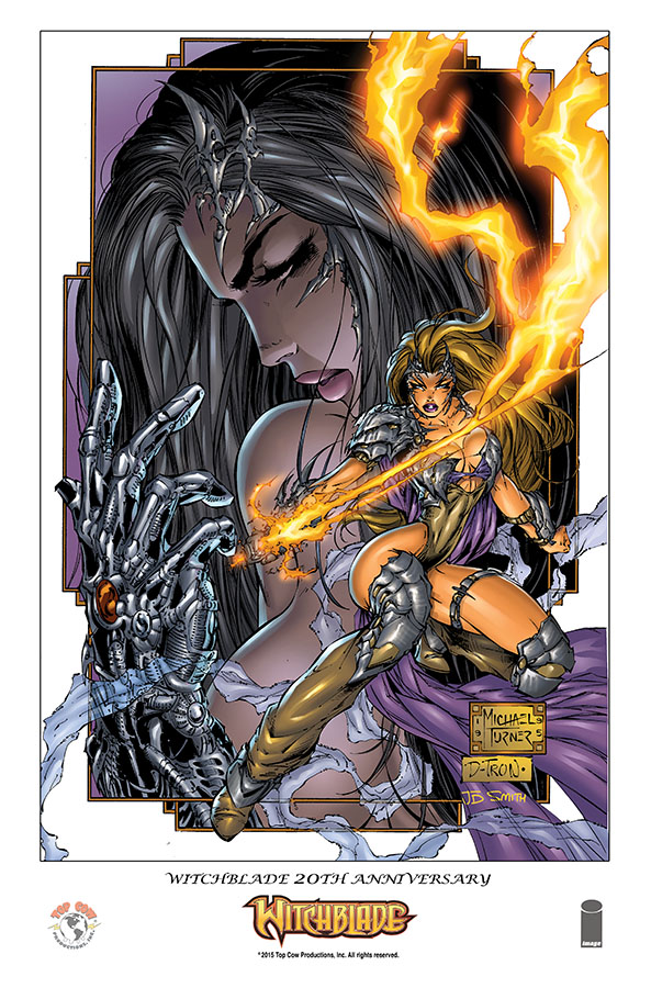 There will also be a limited number of 11” x 17”, full-color WITCHBLADE 20TH ANNIVERSARY COMMEMORATIVE LITHOGRAPHs featuring art by Michael Turner available on October 28th that can be pre-ordered using Diamond Code AUG150504.