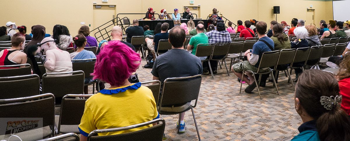 Because that’s all cosplay really is, isn’t it? Make-believe. Conventions are that one place where we truly get to be someone else for a day. We get to be heroes, villains, and everything in between. We don’t even have to be human beings from the planet Earth. Kids get to pretend they are their favorite characters all the time, but as you get older, you’re discouraged or downright forbidden from the practice. “Cute” becomes “childish” or even “crazy.” Conventions have always been that one place where we could go to actually BE someone else for a day. As cosplay, costuming, and conventions have grown in popularity, so have the negative experiences. Cosplayers are told that they cannot portray the character they love because they are the “wrong” color, gender, or size. They are made uncomfortable by the unwanted advances of a fan or they become the butt of a cheap joke taken too far. In order to combat these negativities, and preserve the safe haven that is the convention, PCU founder and CosLove member Harry Crosland organized this panel to go over the following: