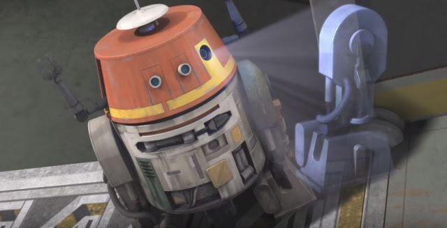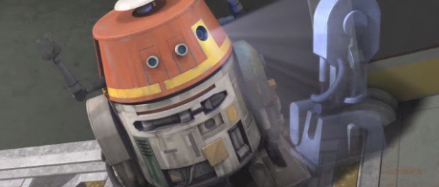This was the make it or break it point of the episode. Anyone watching was going to either be soured by the character development of these droids or not. One thing Star Wars was always good for was at least giving back story to its supporting characters and this time it’s no different. We find out that both droids are vets from the Ryloth campaign and this is how we learned that Chopper was rescued by Hera from a downed Y-Wing. AP-5 was a tactical droid until his commander was killed. With these droids’ prior military service it makes me wonder if droids could collect vet benefits…o well. Also a part of the reason why AP-5 won’t shake his Stockholm-like thinking is because of the restraining bolt he has attached in which Chopper mercifully dislodges.