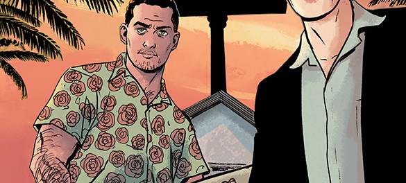 Nick Spencer (Avengers, Iron Man, Thief of Thieves) is a master at the crime comic, and here he brings us face to face with the best of both law enforcement and the criminal element. Only with this title, they are both the same people. The Fix introduces us to Roy and Mac, two detectives in the Los Angeles Robbery and Homicide division, who investigate crimes caused by dangerous, hardened criminals, themselves. With the arrival of the technological age, it is rough for your average thief these days. Identity theft, online scams and hacks have made your average storefront crook obsolete. One sure way to keep up with the dwindling action is to play both sides of the fence. Become a cop and a criminal, which Roy and Mac have down to an art form. They target a local nursing home to rob not only the afternoon bingo players but a low level retired thug who is told to have a lot of hidden cash in his room by the nurse that Mac is sleeping with. They get chased off by the elderly crook but soon return to investigate their own crime. The partners make deals with rich movie producers, bet on robot death matches, and have an all-around great time. Unfortunately their small time action isn’t enough to repay the local mob boss for whom they work. Josh is a stay at home dad, a health nut, and looks like your kids soccer coach. He is also a cold blooded psychopath who will make you wish you were never born if you cross him. His detective employees owe him a substantial amount of money, and he is quickly losing patience with them. As a last chance, he gives him an assignment that could prove to be their final mission.