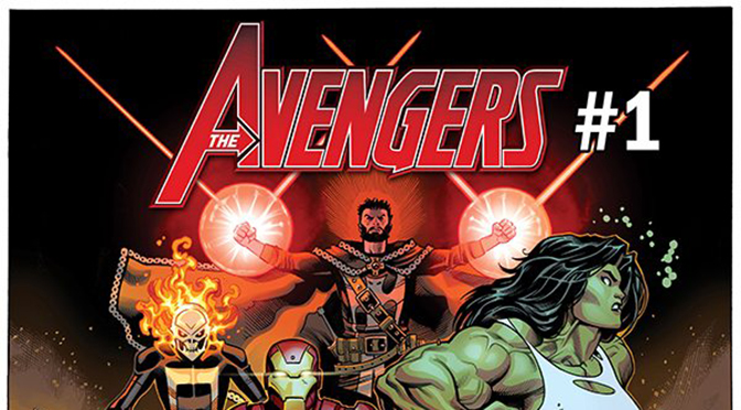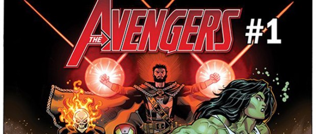 Along with Captain Marvel, Black Panther, Ghost Rider (Robbie Reyes), Hulk (Jennifer Walters) and Doctor Strange, AVENGERS #1 will reunite the powerful Big Three, as Thor, Captain America, and Iron Man work together to save the world from one of their most powerful enemies yet: the 2000-foot-tall space gods known as the Dark Celestials!