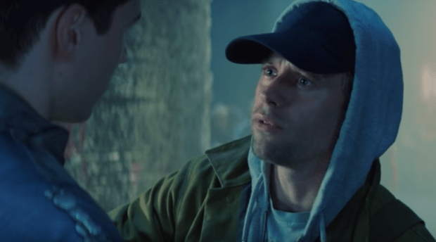 Also, how does he not stand out even while in the shadows, in Earth clothing? How will that be explained? And what about those cigarettes he dropped…? Which brings us to…