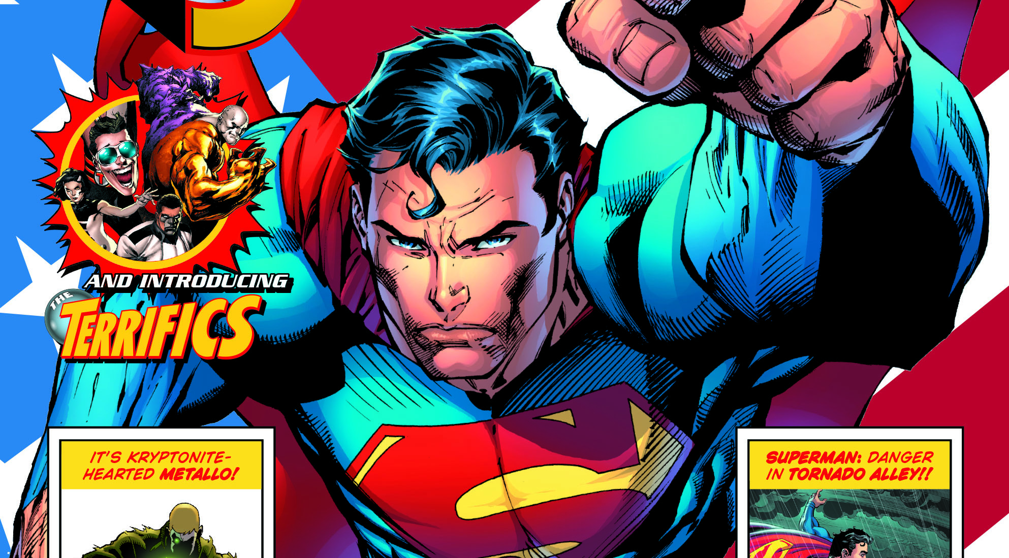 SUPERMAN GIANT #1 features chapter one of the two-part “Endurance,” an original story written by Jimmy Palmiotti (HARLEY QUINN, ACTION COMICS) with art by Tom Derenick (HARLEY QUINN, CYBORG, BATMAN/SUPERMAN). The Daily Planet sends Clark Kent to Tornado Alley to do a story on the area, but when the storm hits, it turns out that this mild-mannered reporter is more helpful as Superman.