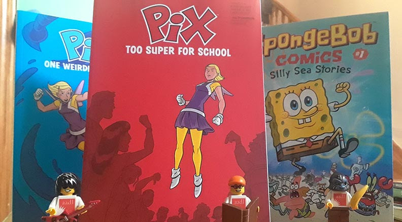 PIX, a superhero/fairy tale mash-up, follows the adventures of Pix, a teenage superhero who believes herself a fairy princess. TOO SUPER FOR SCHOOL, the second volume in the series, has Pix dealing with the challenges of her fairy beliefs and superhero actions at school.