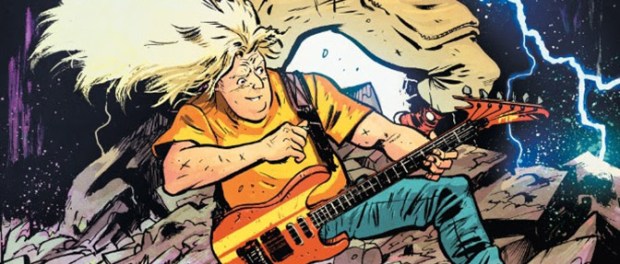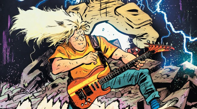 Jake’s life is falling apart: no band, no girl, no future…until he meets Murder Falcon, a legendary monster-killer sent from The Heavy to destroy all evil. But he can’t do it alone—he needs Jake by his side, shredding up a storm. Now, with every chord Jake plays on his guitar, the power of metal fuels Murder Falcon into all-out kung fu fury on those that seek to conquer Earth.